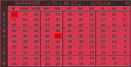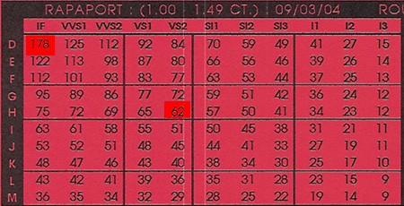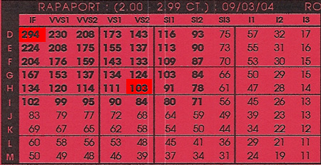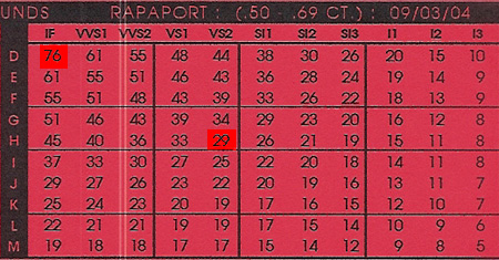 There are several diamond price sheets that appraisers throughout the nation consult to estimate the wholesale value for diamonds. The Rapaport Diamond Report is likely the most widely used.
